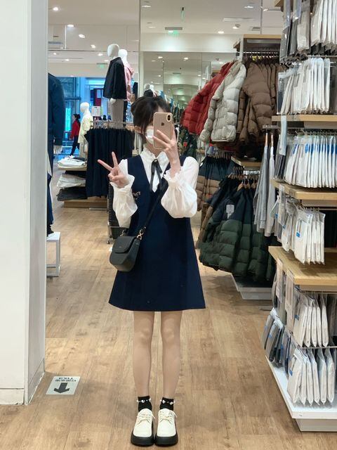 女性のためのカレッジスタイルのベストドレス春と秋の 2023 新作甘くてファッショナブルな V ネック A ラインショートスカート優しくて小さい